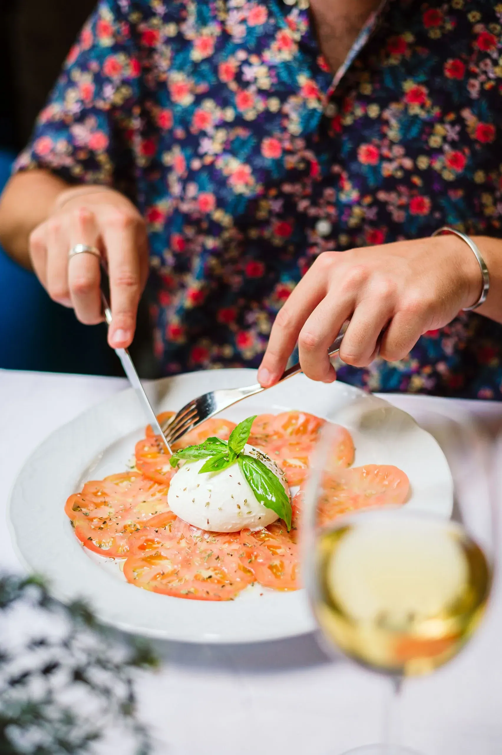 - Ensalada Caprese (mozzarella di búfala con tomate RAF y orégano) _____ 9,90