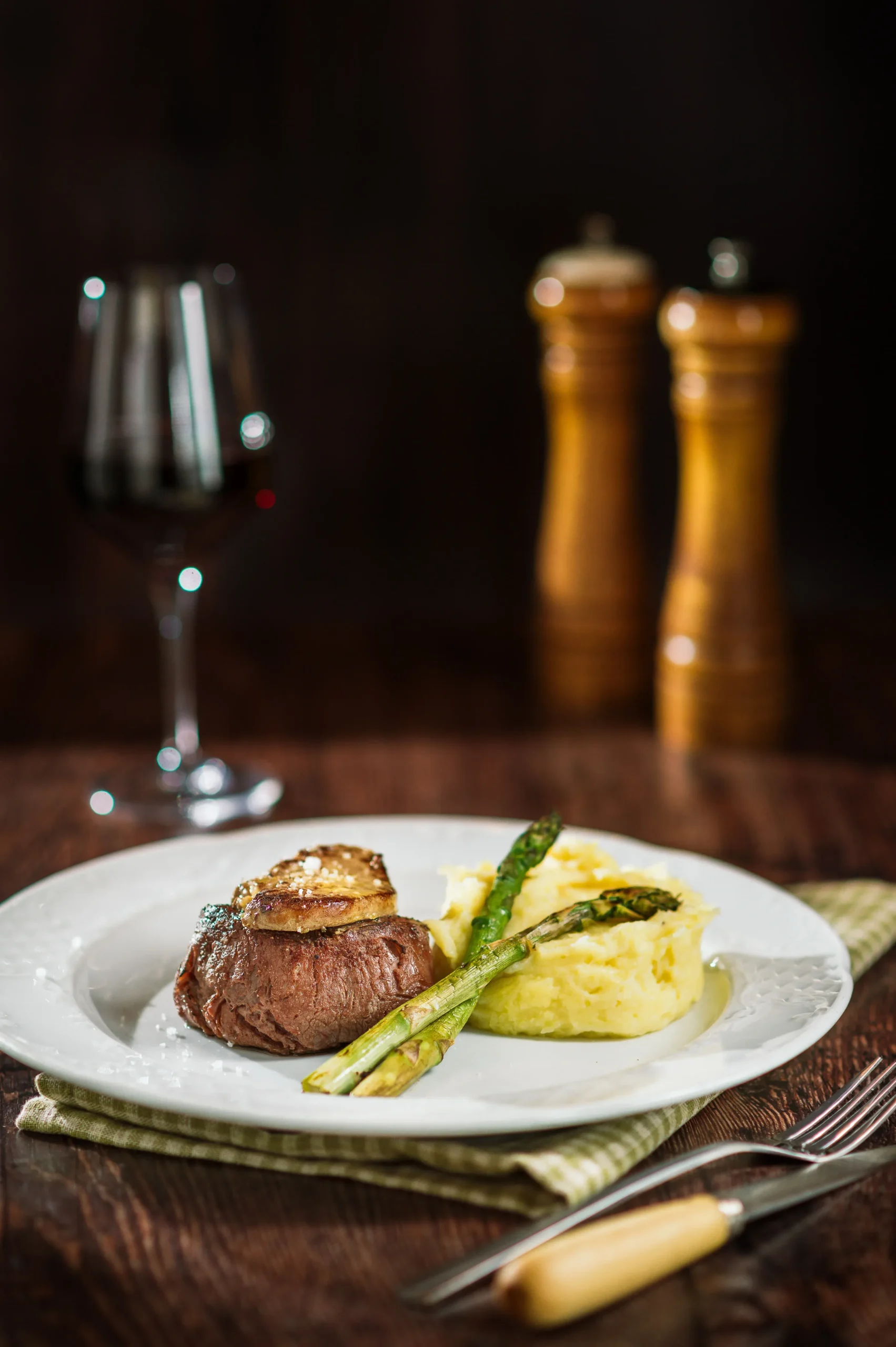 - Solomillo 200 gr. (solomillo de ternera con foie gras acompañado de puré de patata trufado) _____ 29,90