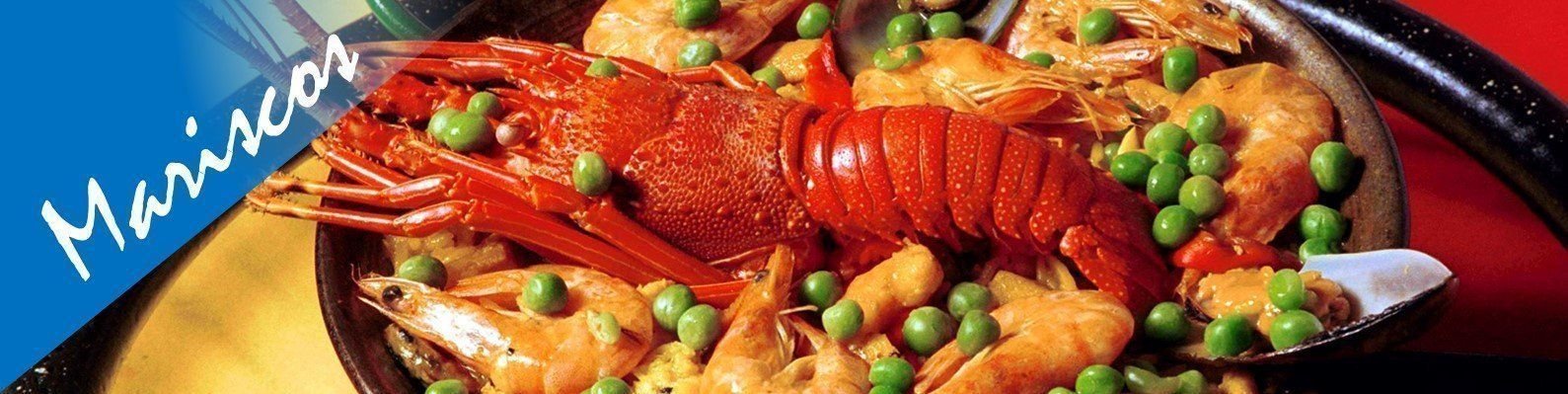 Mariscada compuesta por 1 buey de mar, 1 langosta (partida por la mitad), 2 nécoras, 250 gramos de gambas medianas, 250 gramos de langostinos rayados pequeños, 8 quisquillas, 5 bocas chicas y 10 cañaillas
