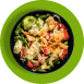 Ensalada con lechuga, tomate, salmón ahumado, salsa Teriyaki