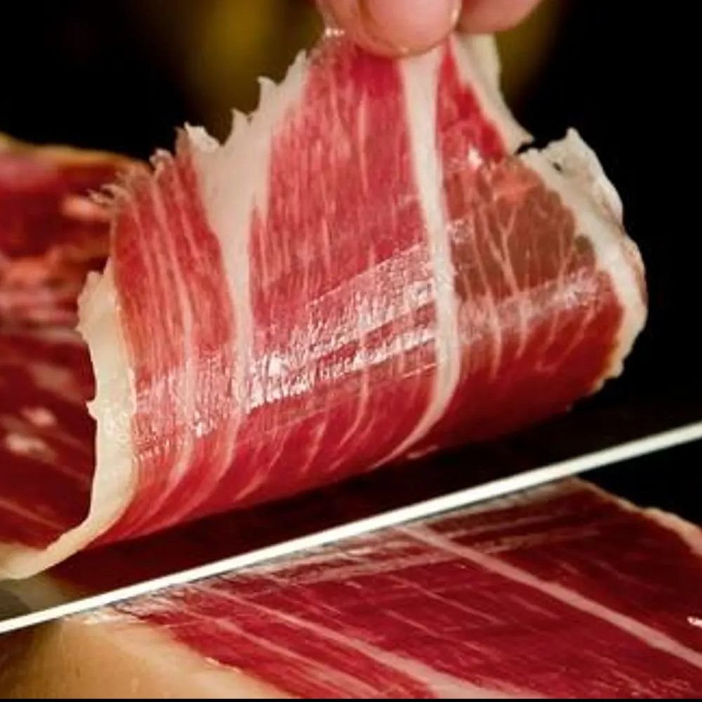 El corte del jamón es fundamental para disfrutarlo adecuadamente. Se recomienda utilizar un cuchillo afilado y realizar cortes finos y amplios de manera que se exponga la mayor superficie del jamón. Los cortes deben hacerse a lo largo de la pieza, empezando por la parte más ancha y contrastando las diferentes partes del jamón, lo que permitirá apreciar mejor su textura y sabor distintivo. El jamón debe servirse a temperatura ambiente, sacándolo de la nevera al menos 30 minutos antes de servirlo.